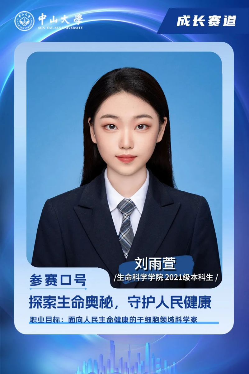 刘雨萱同学以“面向人民生命健康的干细胞领域科学家”为职业目标,以“探索生命奥秘,守护人民健康”为参赛口号,通过“使命的召唤”“职业的探索”“攀登的阶梯”“奋进的步伐“不懈的追求”等五个部分,从国家战略、行业背景、职业目标、目标聚焦、个人剖析、胜任能力、计划路径、获奖荣誉、学术交流、持续学习、科研技能、目标契合动态调整等方面陈述和展示生涯发展报告,回答评委提问,并进行目标职业能力展现,顺利通过金奖争夺赛,闯入国赛晋级排位赛并取得优异成绩。