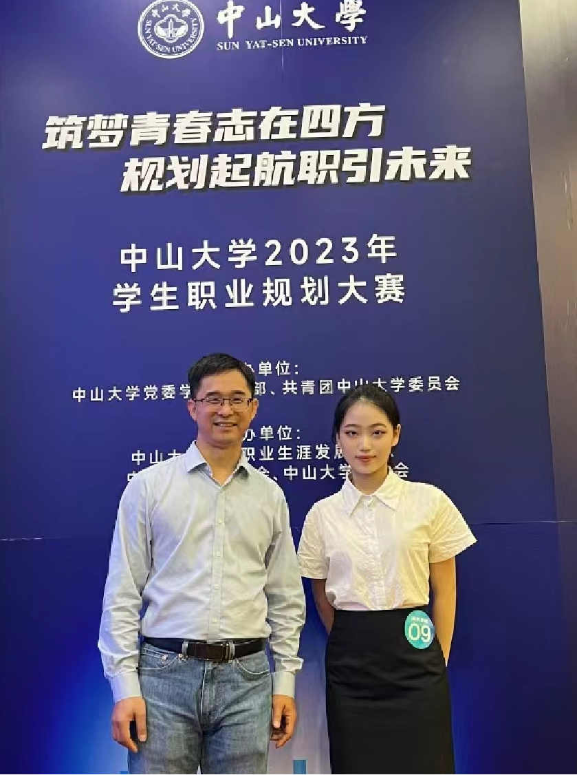 首届全国大学生职业规划大赛广东省分赛成长赛道高教组金奖颁奖仪式(右一为刘雨萱)