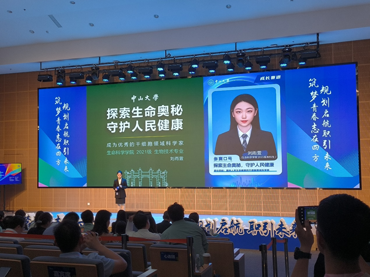 刘雨萱同学以“面向人民生命健康的干细胞领域科学家”为职业目标,以“探索生命奥秘,守护人民健康”为参赛口号,通过“使命的召唤”、“职业的探索” 、“奋进的步伐”、“不懈的追求”四个部分,从国家战略、行业背景、职业目标、目标聚焦、个人剖析、胜任能力、计划路径、获奖荣誉、学术交流、持续学习、科研技能、目标契合动态调整等方面陈述和展示生涯发展报告,积极回答评委提问,并进行目标职业能力展现,最终取得国赛总决赛银奖的优异成绩。