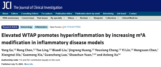 我院徐安龙/元少春课题组在JCI发表论文揭示m6A调控过度炎症的普遍机制