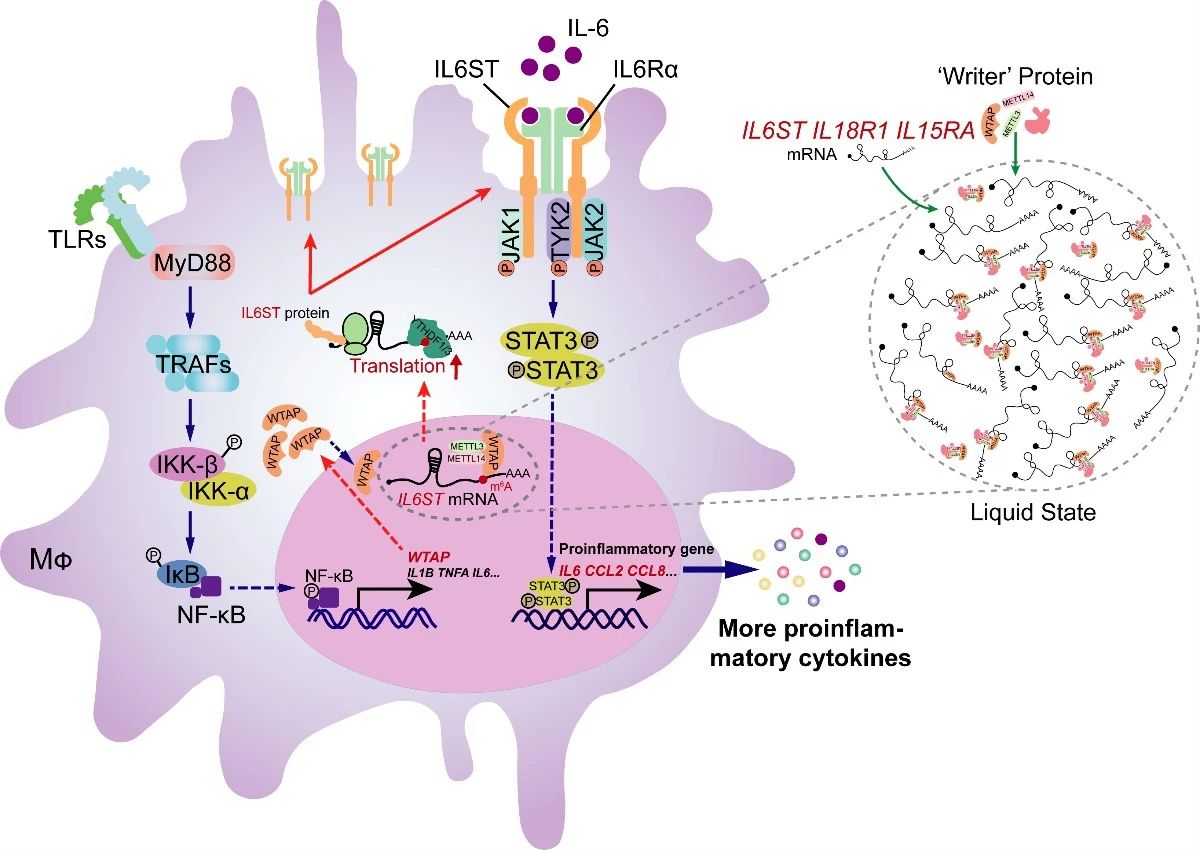 WTAP通过m6A及相分离加快炎症反应影响炎症性疾病发展的机制图