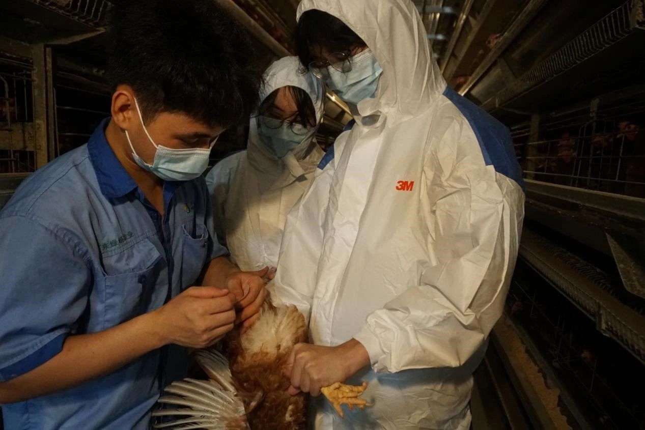 与此同时,采样组的成员穿上防护服进入鸡舍进行采样。在技术人员的指导下,队员们选择了鸡舍中部,角落,输水系统等地方进行了采样。