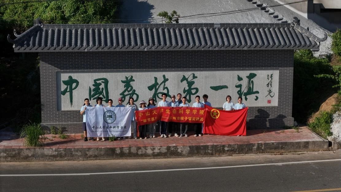 实践团在“中国荔枝第一镇”牌坊前合影