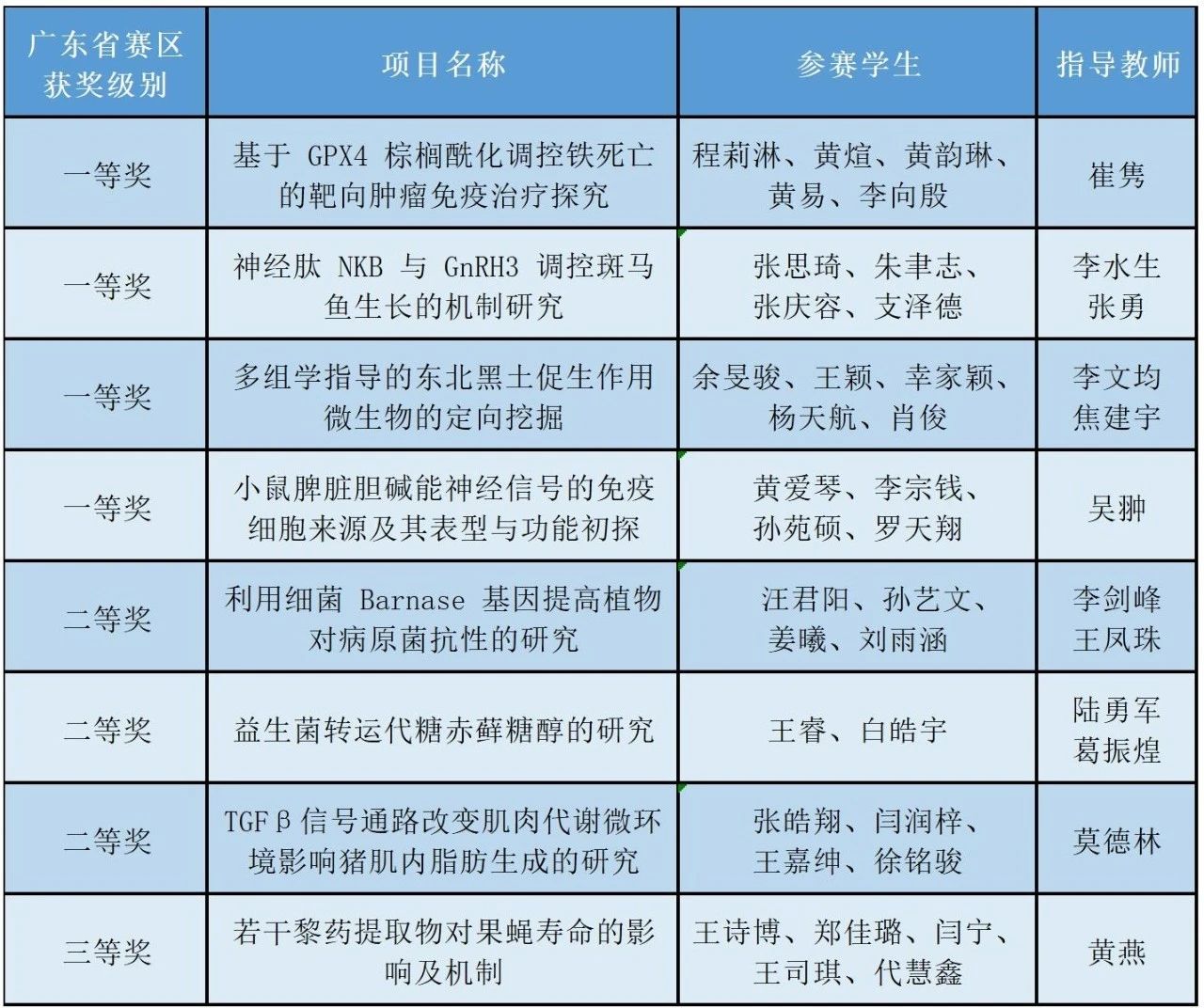 附:我院学子在第九届全国大学生生命科学竞赛(科学探究类)广东赛区的获奖情况