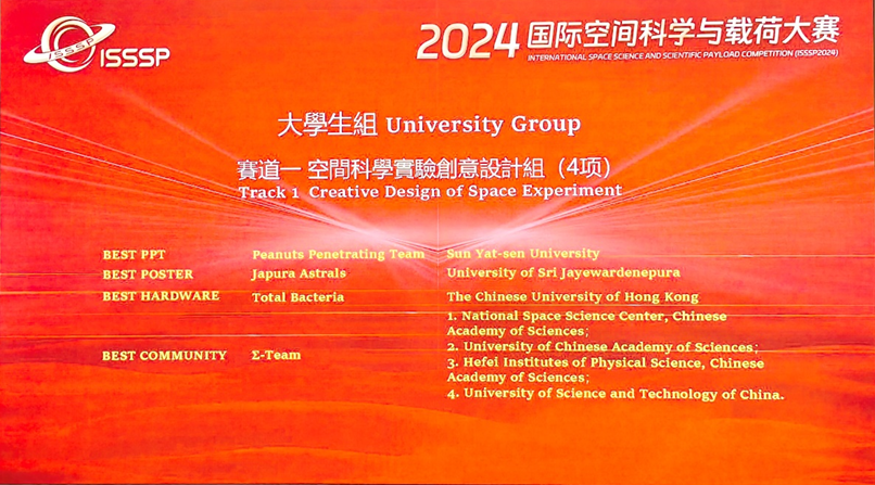 2024年8月12-13日,由中国宇航学会、北京理工大学、国际宇航科学院、亚太空间合作组织、香港中文大学等单位和机构共同主办的2024国际空间科学与载荷大赛总决赛在香港成功举办。2024国际空间科学与载荷大赛作为全球航天领域的重要赛事,自启动以来吸引了全球50多个国家和地区超过80所高校的积极参与,近200支队伍报名参赛,参与人数超过1000人,创下了历史新高。