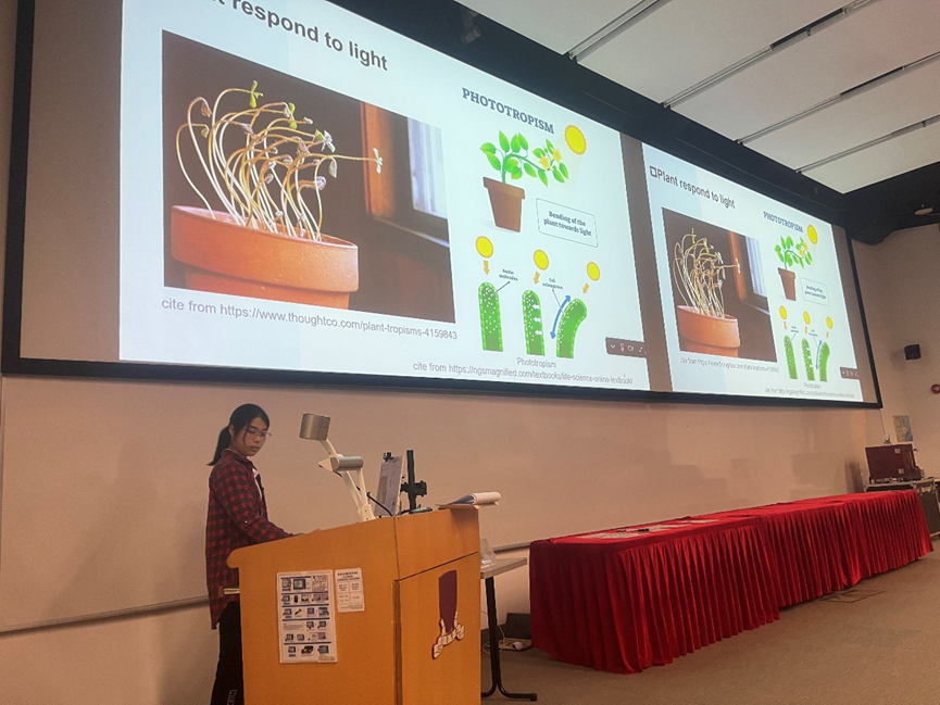 我校生命科学学院学生2022级郭靖,2023级徐艺宸和我校政治与公共事务管理学院学生2021级江语晨组成了“花生快落队”参加了本次比赛。三位同学在我院郭金虎教授的指导下,确定了《Investigation of the Effects of Space Microgravity and Light on Peanut Peg Penetrating into Soil and the Underlying Regulatory Mechanisms》的参赛题目,花生的果针要受到重力的调控,钻入土中避免黑暗才能正常发育成果实,“花生快落队”提出以花生果针的入土现象为研究起点,提出了探讨空间微重力和光照条件影响果针发育的研究方案。