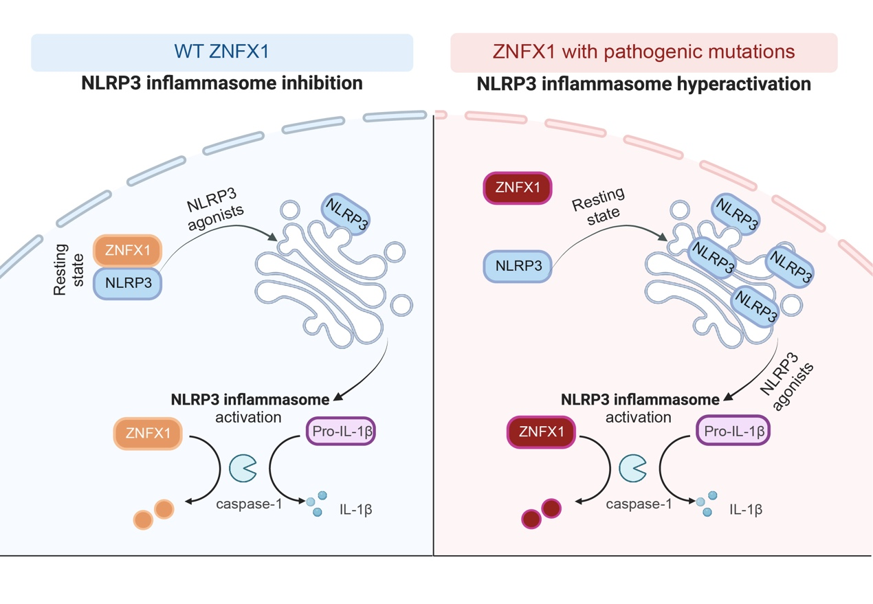 我院徐安龙教授团队,2019年在Nature Cell Biology杂志上发表论文揭示了ZNFX1 是一种病毒传感器,通过MAVS启动抗病毒反应。同时,万刚教授2018年在Nature上发文发现ZNFX-1在秀丽线虫中介导RNAi的跨代表观遗传,但是ZNFX1在人中是否起着类似的保守的功能还不清楚。近年来多个遗传疾病病例的研究表明,ZNFX1缺陷与严重的家族免疫缺陷、多系统炎症性疾病、对病毒易感性增加以及病人过早死亡相关。然而,由于对ZNFX1突变导致的疾病发病机制了解不足,目前针对ZNFX1病理性变异患者的治疗手段非常有限。