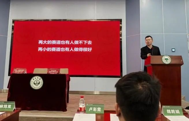 王鑫先生作为广州市威学一百国际教育科技有限公司的创始人兼总经理,同时也是中山大学生命科学学院2005级的杰出校友,他的个人成长与职业发展轨迹为众多学子提供了宝贵的启示和激励。他分享了自己从大一迷茫到逐渐明确方向的历程以及在此过程的奋斗与担当。面对挑战与困难,他坚定信念,学会了适应与担当。而王鑫校友提出的4A模型(Aim Ardent Adapt Accountable)精炼总结了他的成功经验。而他所说的“再大的赛道也有人做不下去,再小的赛道也有人做得很好”,则更是深刻地揭示了成功的真谛。它告诉我们,无论我们所处的领域或赛道如何,只要我们能够找到自己的定位、发挥自己的优势并持续努力,就一定能够收获属于自己的成功。王鑫校友的分享不仅是对他个人成长经历的回顾和总结,更是对广大青年学子的鼓励和启示。他用自己的实际行动证明了:只要我们敢于梦想、勇于追求、坚持不懈地努力下去,就一定能够找到属于自己的天空、实现自己的人生价值。