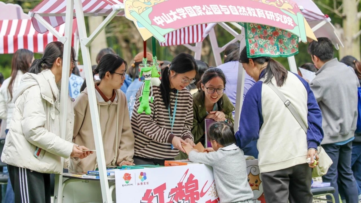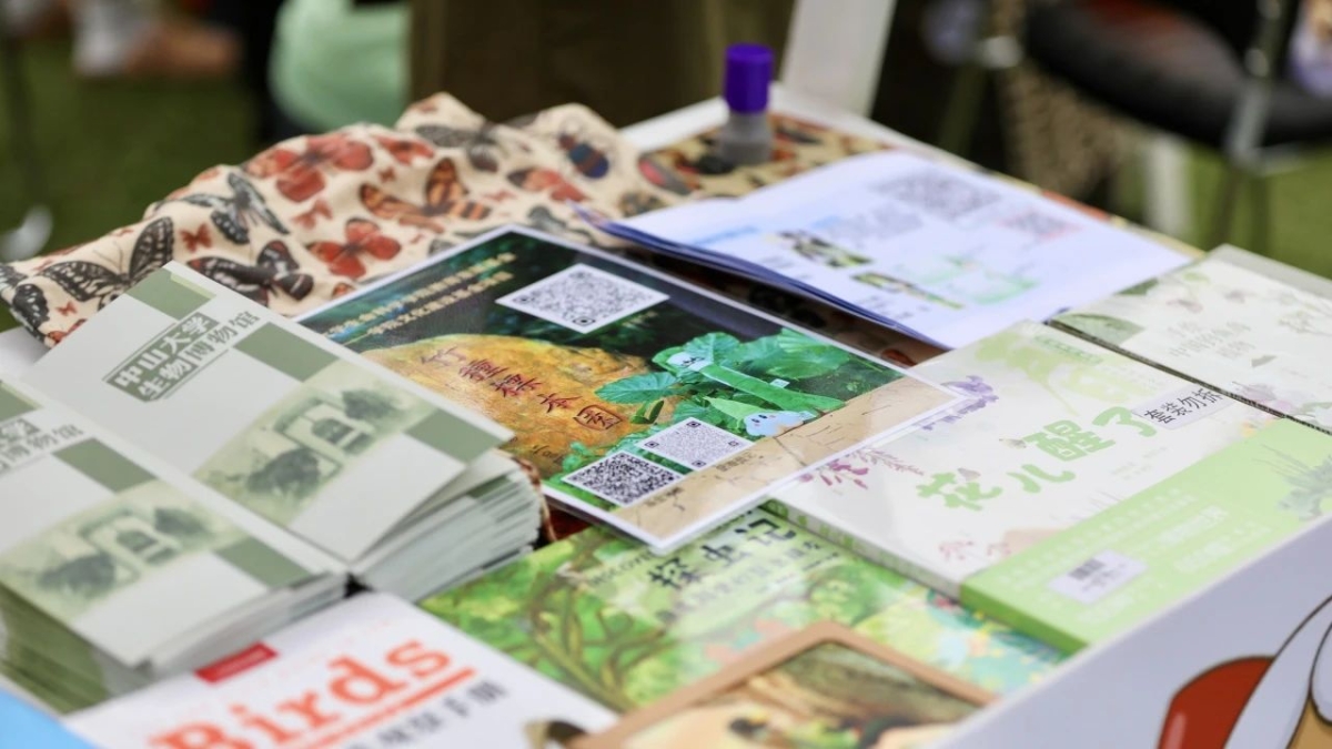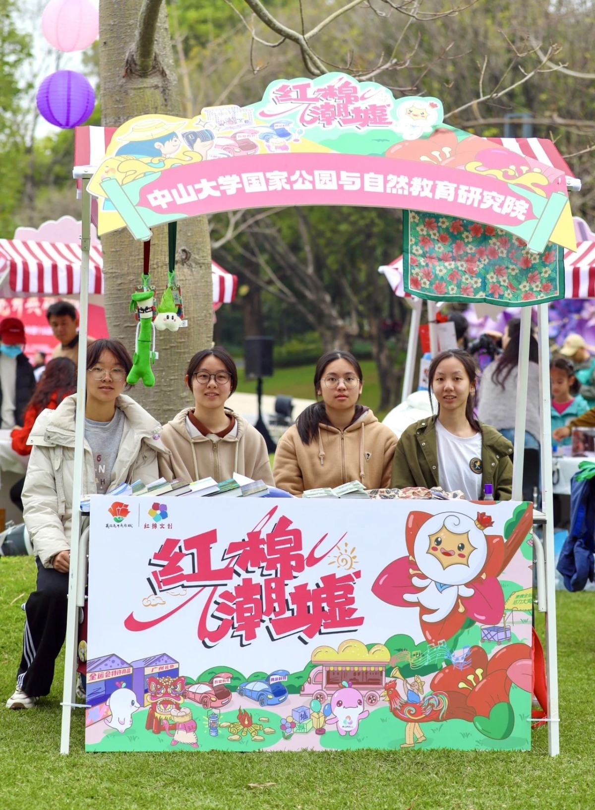 在“红棉潮墟·自然市集”中,中山大学国家公园与自然教育研究院展示了中山大学丰硕的科研科普成果。展示内容包括《广州海珠国家湿地公园植被志》(周婷主编)、《澳门植被志》(彭少麟主编)、《恢复生态学》(彭少麟等编著)、《罗霄山脉生物多样性考察与保护研究》系列(廖文波等编著)、《广东丹霞山植物图鉴》(凡强等编著)、《中国井冈山地区陆生脊椎动物彩色图谱》(王英永等编著)等科研专著;《中国鸟类观察手册》(刘阳等主编)、《手绘中国钓鱼岛植物》(叶建飞主编)、《探虫记——康乐园里的昆虫朋友》(庞虹等主编)、《水陆精灵—中国珍稀濒危两栖爬行动物手绘观察笔记》(齐硕等主编)、《全球变化——你感受到了吗?》(彭少麟等主编)等科普图书;以及“竹生生”“竹科科”玩偶和“山茶属植物”“甲虫有彩”“蝶影成群”系列文创。