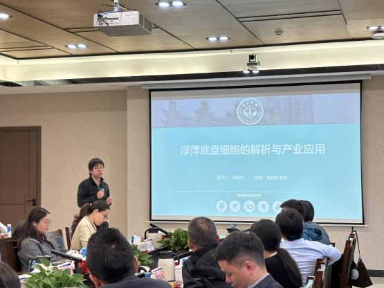 会上有五位研究生代表汇报了他们一年来的工作,博士后邹创超做《机器学习赋能的现代化养殖疫病监测预警体系的应用和展望》、博士生王暄慈做《基于AI算法的猪肠道健康评估技术研究与应用》、博士生杨怡勤做《多组学赋能精准医学:发现病毒性腹泻猪的治疗靶点与干预策略》、冯雨轩做《浮萍底盘细胞的解析与产业应用》、黄婧妤做《浮萍资源收集到产业应用——立体化培养与高价值产物开发》的报告。