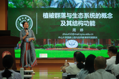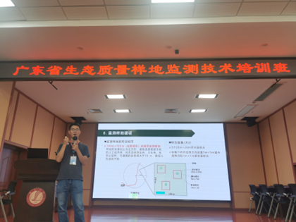 开班仪式后,中山大学生命科学学院廖文波教授介绍了本次培训的师资队伍与课程安排,培训内容涵盖生态监测的基本概念、理论、技术方法、野外实践等部分,共设8场主讲报告。首先,原广东省生态环境厅二级巡视员朱经发高级工程师以“重要生态空间遥感主动发现生态问题的工作思路与典型案例”为题,介绍了生态监测的意义、需求、总体设计以及遥感技术应用;其次,廖文波教授围绕“生物多样性的概念和价值”,深入讲解了物种、区系、生物多样性的概念、价值以及常规的生物多样性科学考察等内容;第三,周婷副教授主讲了“植被群落与生态系统的概念及其结构功能”,介绍群落、植被、生态系统的基本概念,以及如何开展相应的技术调查;第四,张健教授以“固定样地对长期生态学研究的意义”为题,介绍了国内外固定样地、监测内容、监测周期及监测数据应用;第五,赵万义副教授详细介绍了“广东省城乡及湿地生态质量样地设置与实操监测”,涵盖样地选点、布设、挂牌、物种识别等具体监测规范,以及“监测数据的标准化、数据填报和报告撰写”等全流程;第六,李步杭高级工程师从国家与地方需求出发,讲解了“生态质量样地监测手段及其实践意义”,结合实例介绍了样地相关参数的设计意义等;第七,凡强教授以“广东省维管植物多样性及近五年来植物新种发现”为题,介绍了广东省维管植物资源概况及近五年来所发现81个新种,探讨了其对生态学研究和生态监测的意义。此外,14日晚廖文波教授还增设一堂科普讲座“南岭国家公园候选区种子植物区系的特点和实践价值”,进一步拓展学员视野。培训中的系列课程紧扣实际、案例丰富,深入浅出地讲解了当前生态监测的技术规范与实践经验,有效地夯实了学员的理论基础。