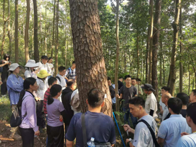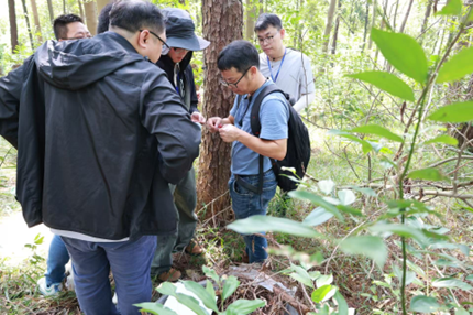 10月15日,培训班学员前往位于韶关国家森林公园的国控生态质量监测样地(样地编号:440203001)开展野外实训。学员共分成A、B两大组,再进一步细分为3-4个小组,在赵万义、李步杭、廖文波等导师指导和协助下,完成了样地选址、样方布设、植物调查、数据采集与记录等全流程实操训练,培训持续至傍晚六时,学员们进一步掌握了标准化监测流程和操作规范。