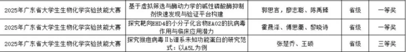 4我院学生参加2025年广东省大学生生物化学实验技能大赛共获得一等奖2项、三等奖1