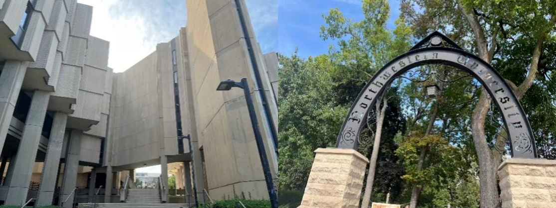 此外,我还联系了西北大学的Dong-Hyun Kim教授。与中大相似,西北大学的院系也分立各处,医学院、法学院等位于一处,学校主体则在另一处。当日前往医学院面见教授之后,便骑行至西北大学本部观览。其法学院、医学院等位于较为芝加哥繁华的地带(图11),本部则较之更加偏僻,但规模较大,古典、现代风格的建筑兼而有之(图12)。当日正值其新生入学之际,校内景象十分热闹。