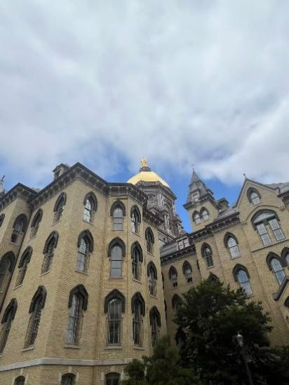 圣母大学内建筑多为欧洲传统风格,其中最惹眼的建筑之一即是中央的Main Building,现用作行政办公楼,据说穹顶由纯金打造,蔚为壮观(图3)。