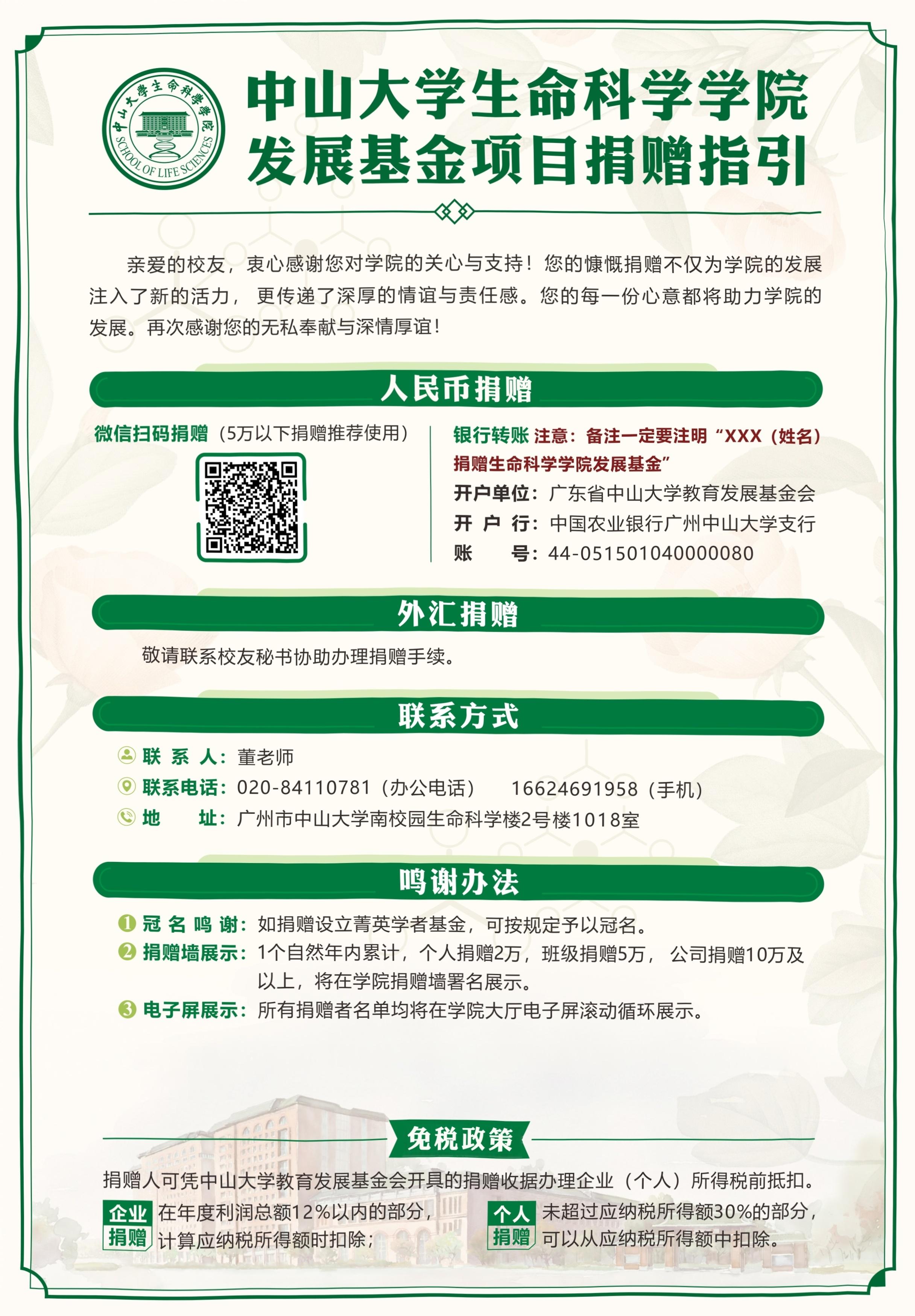生命科学学院发展基金项目简介及捐赠指引